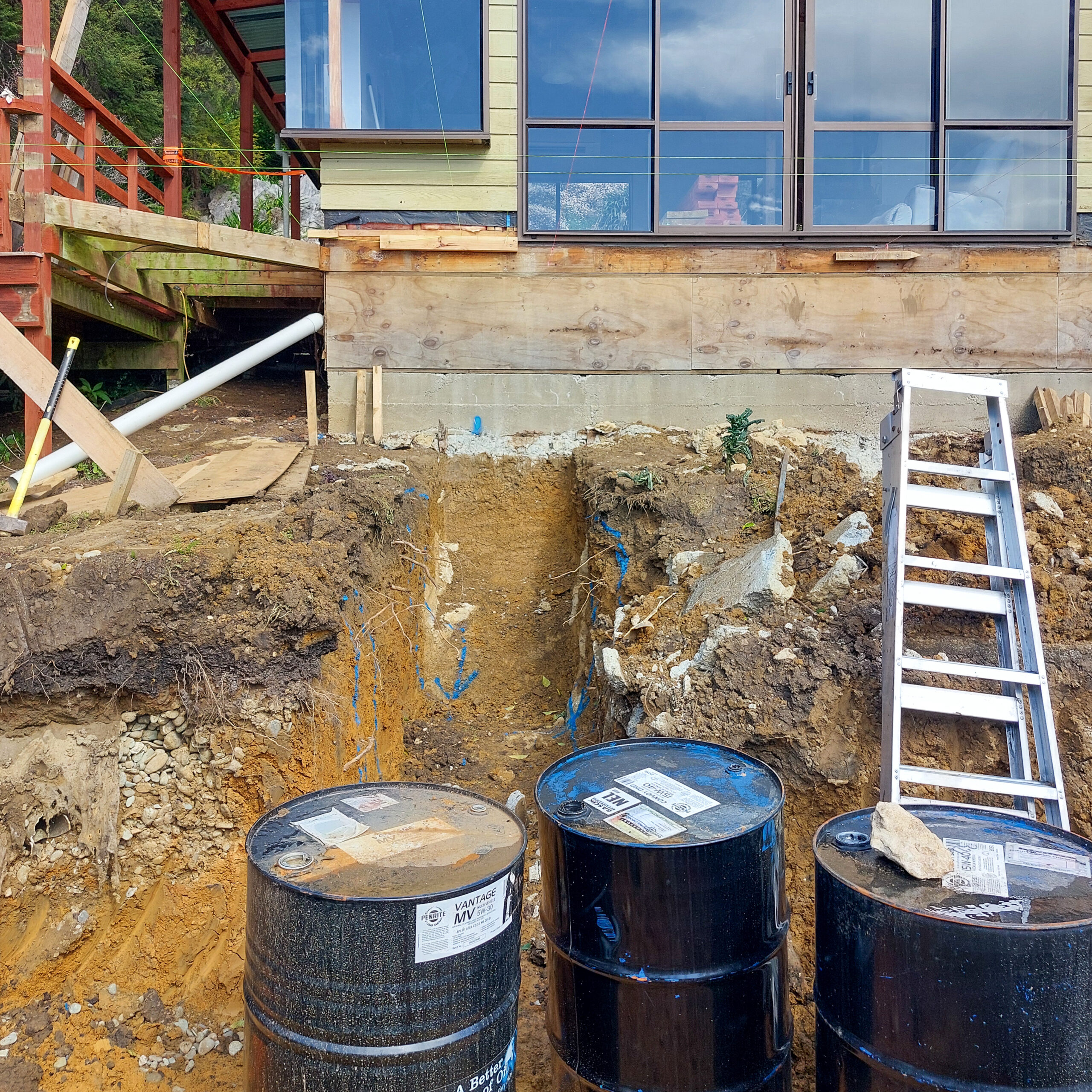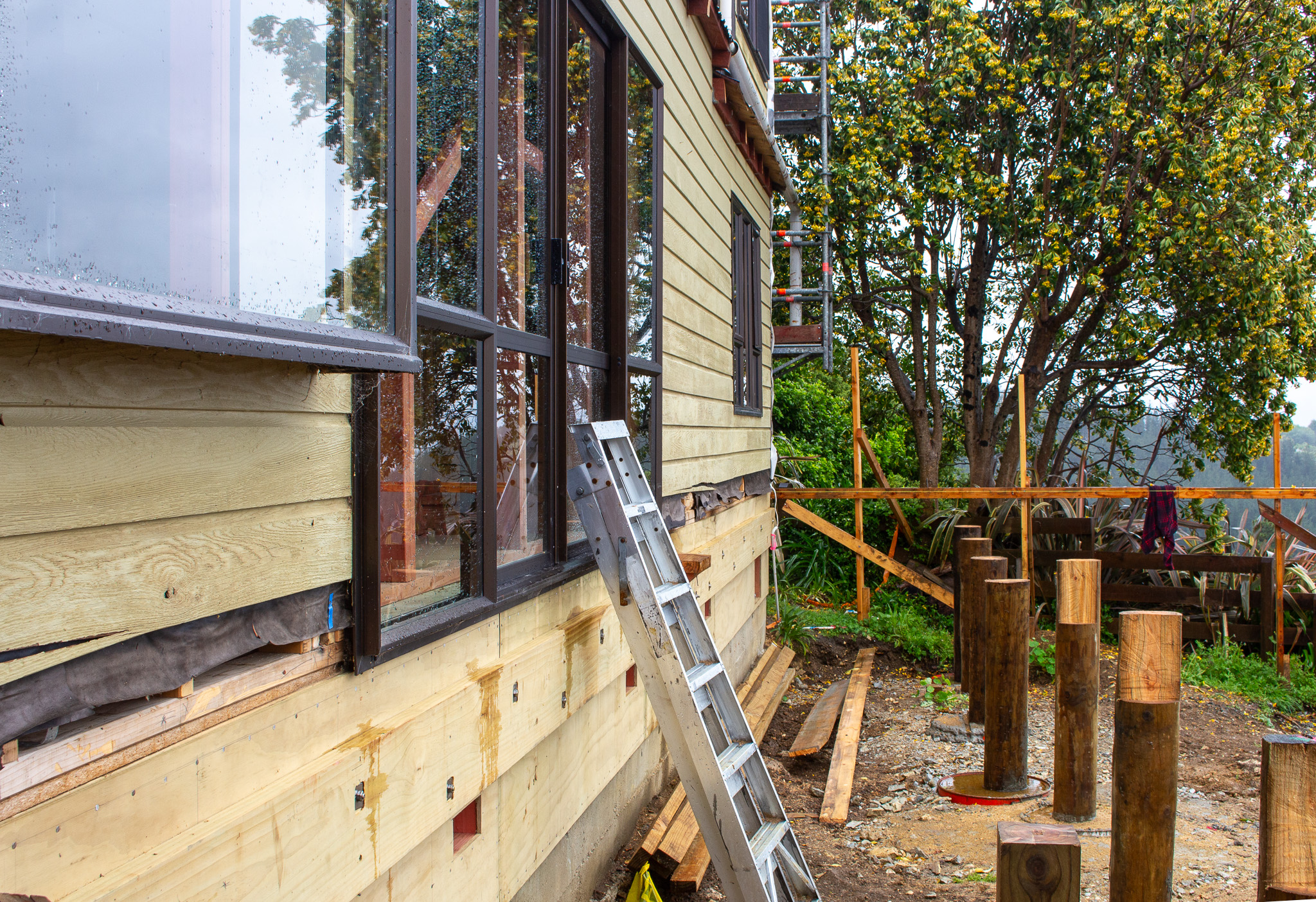 This renovation project involved strengthening the front framing of the house, recladding and insulating the external wall, and building a new Kwila deck.