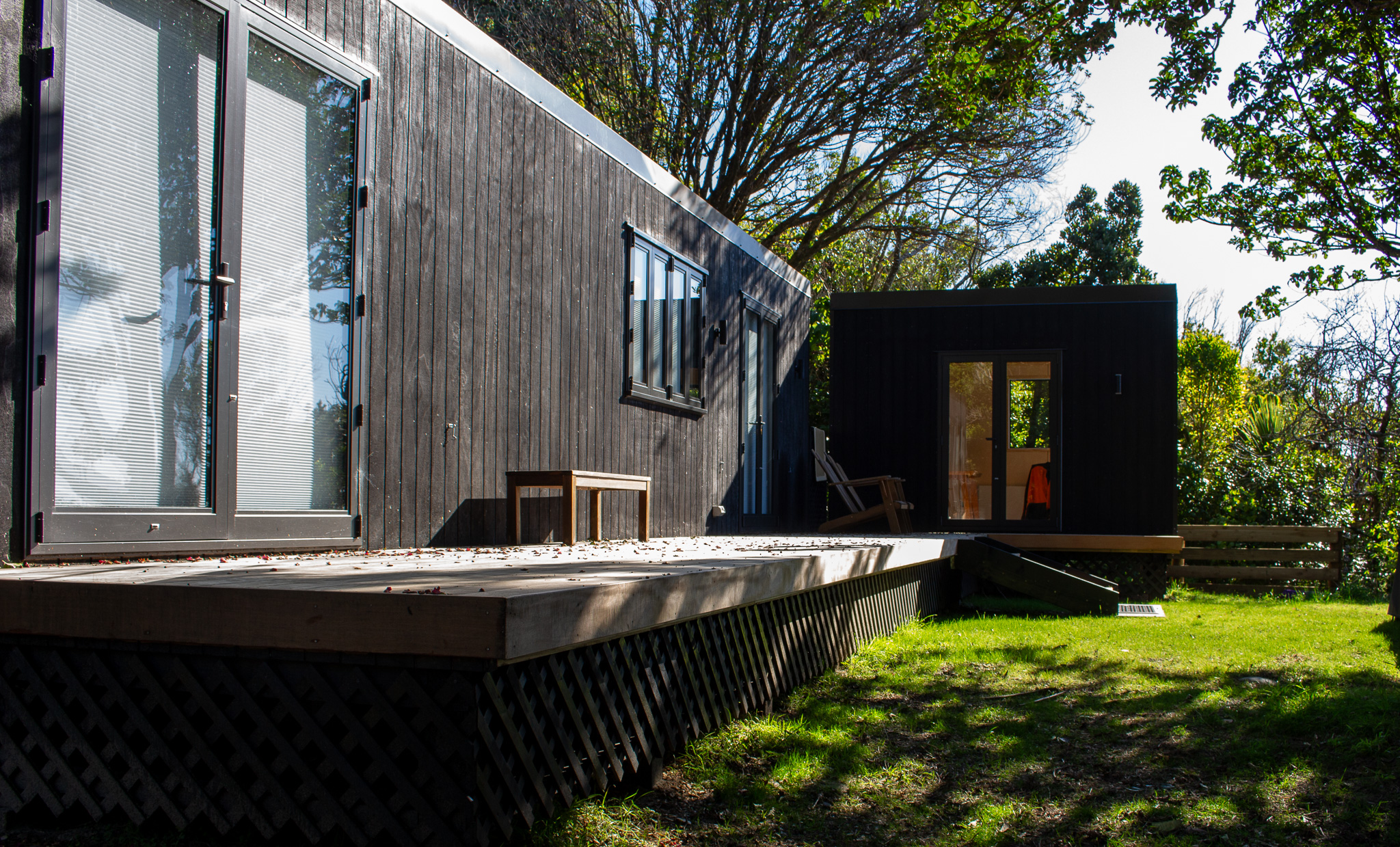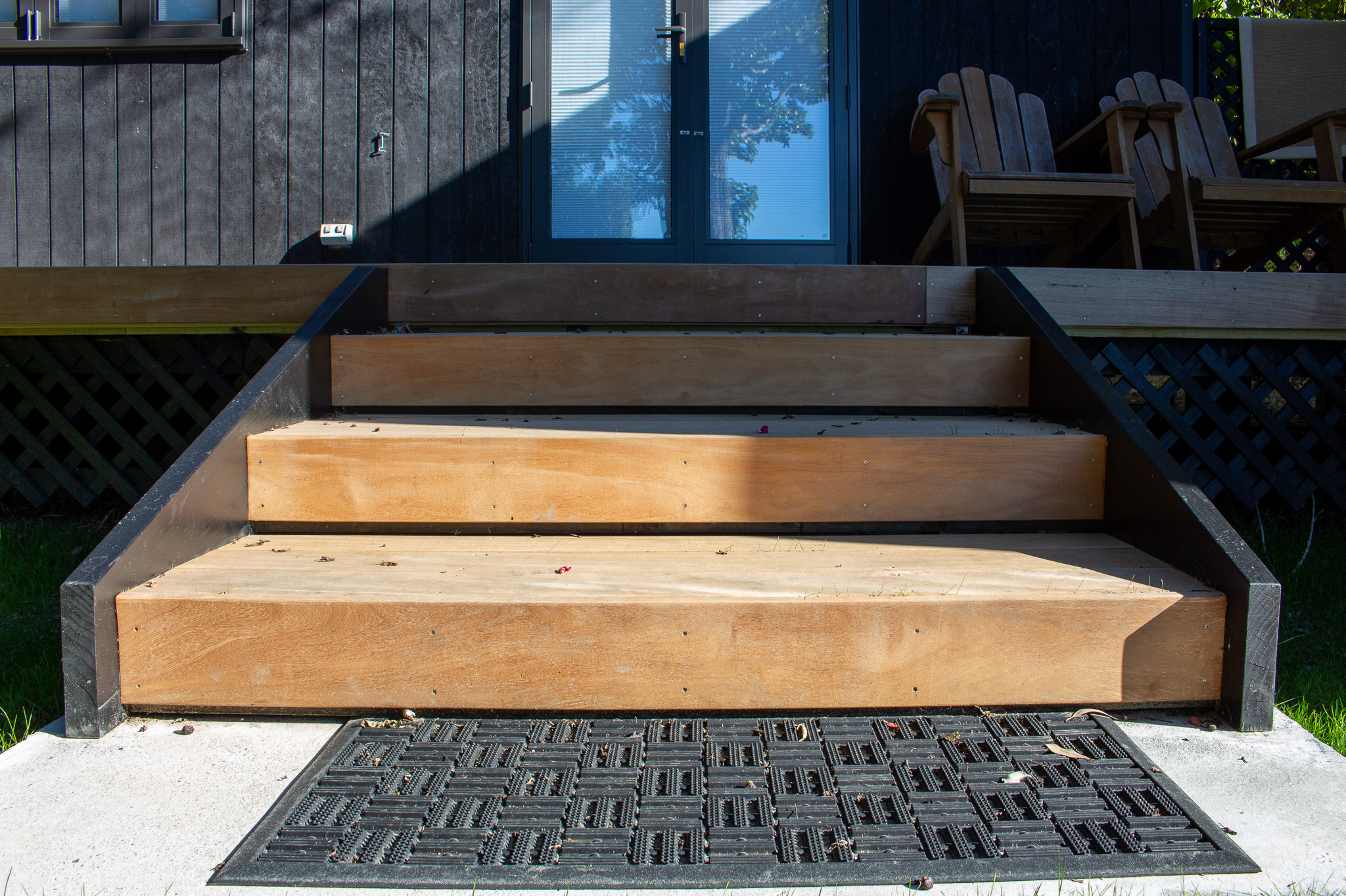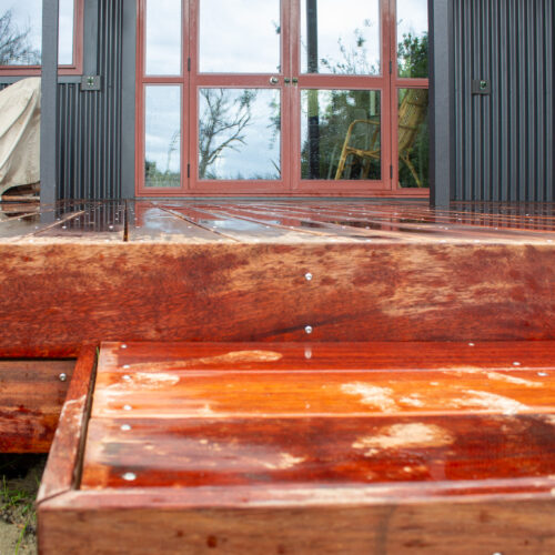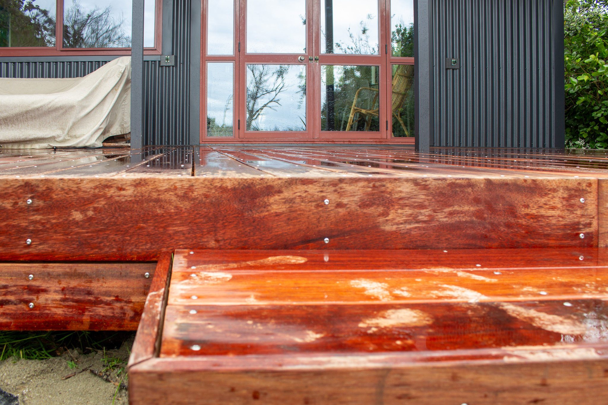 The owner contacted Bay Wide Building to construct a deck, a custom-built accessway to the beach and an external office space. The brief was to match the style of the existing Ruru Tiny Home that is on the property. The deck has been built using Garapa hardwood decking.